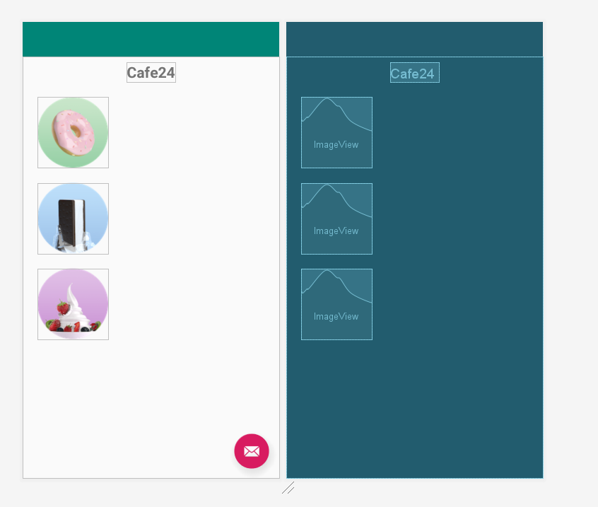 또 ImageView 요소를 활용하여 간단한 메뉴를 주문할 수 있는 Cafe 어플리케이션을 만들어 보겠습니다.
