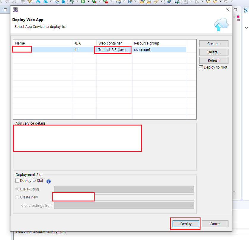 3. 배포하려는 웹앱 선택 후 Deploy 클릭!