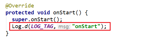 그리고 같은 Activity 상에서 다음과 같이 LOG를 선언해 줍니다.