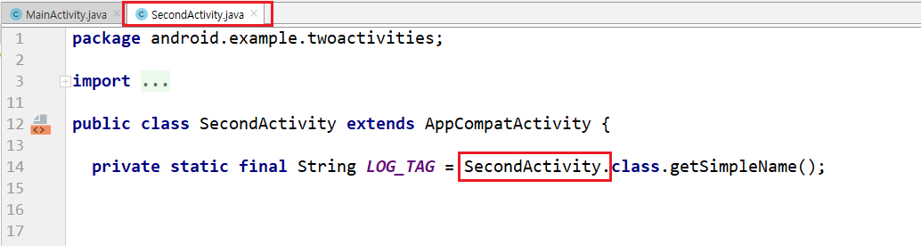 예를 들어 MainActivity 이외에 SecondActivity라는 Activity가 있다면 해당 Activity에서도 상위에 다음과 같이 선언해 주고 Log에 대한 선언을 해준다면 LOG_TAG 에는 SecondActivity가 정의 되고 Logcat에 SecondActivity를 검색 하면 해당 Activity에 대한 log를 찾을 수 있습니다