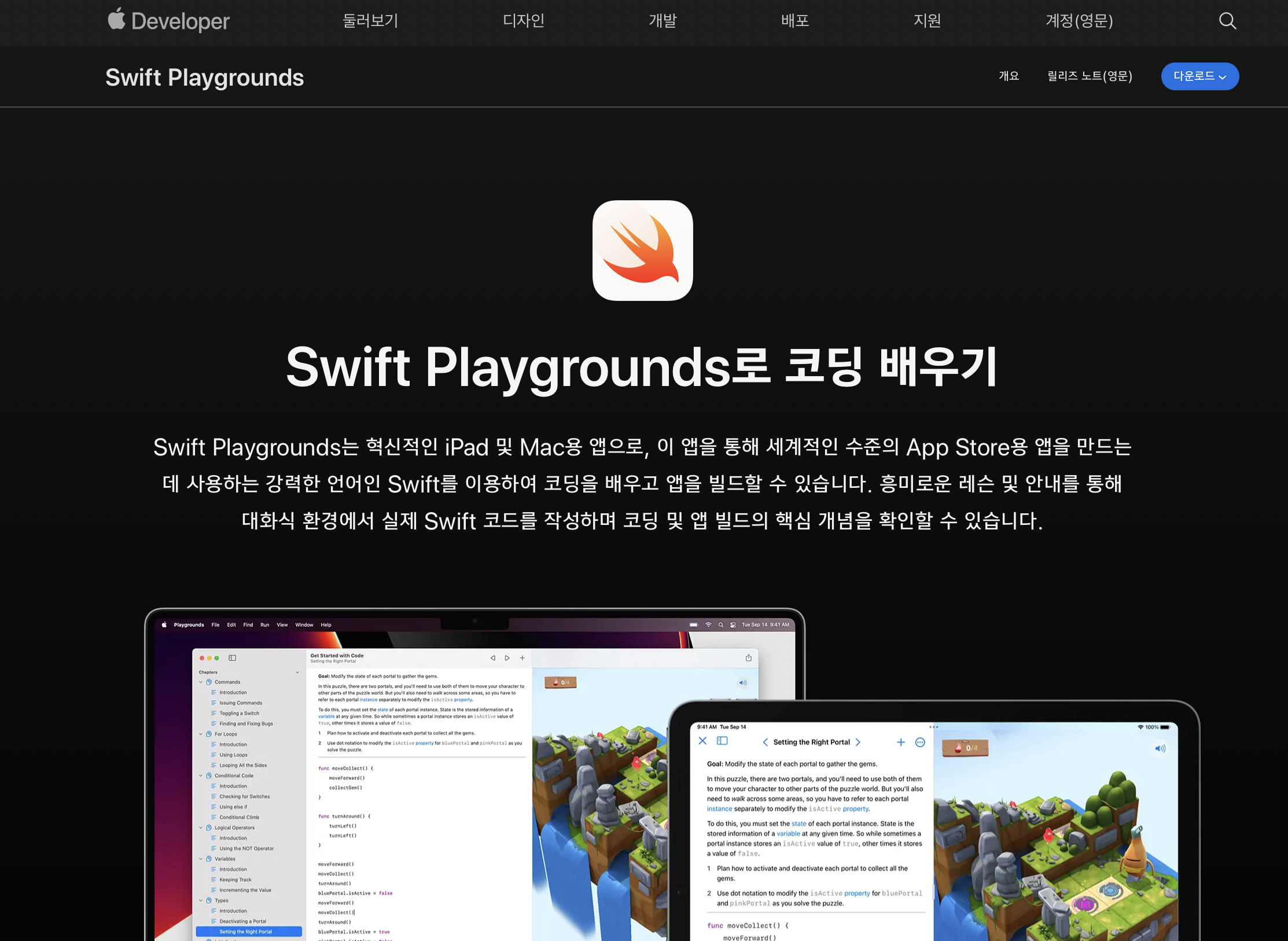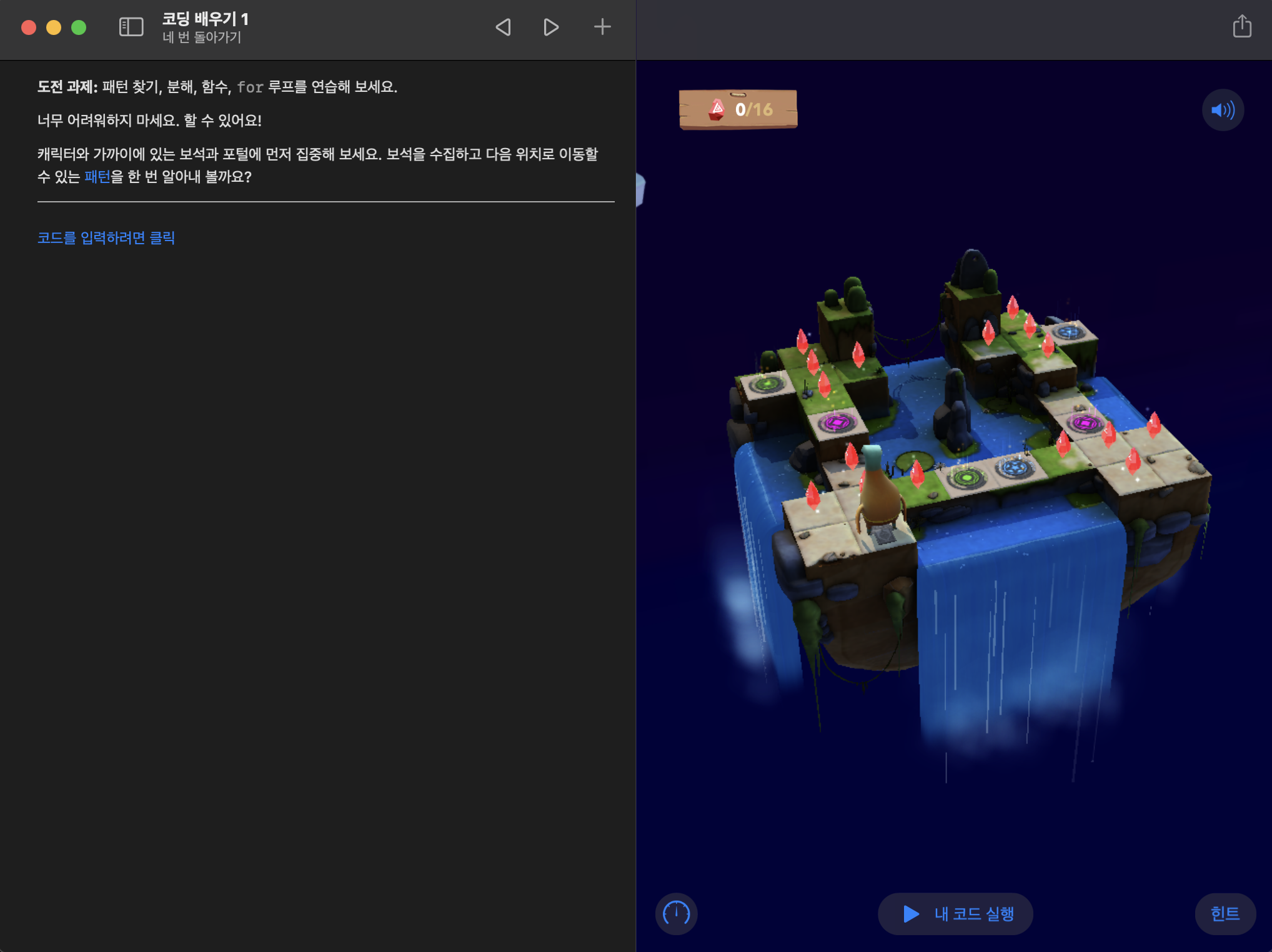 '애플 개발자' 사이트에서 Swift Playground라는 코딩 학습 프로그램이 있어서 한번 해 봤습니다.