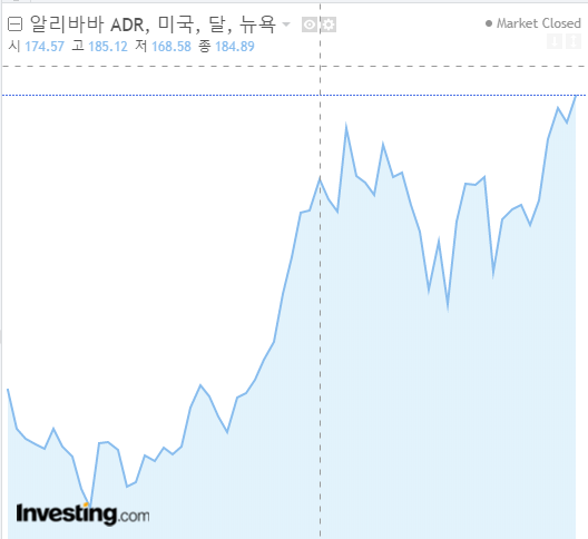 2) 주가 흐름(미국 시장 흐름) / 참고 - 알리바바는 최근 홍콩 증권거래소에도 상장되었음