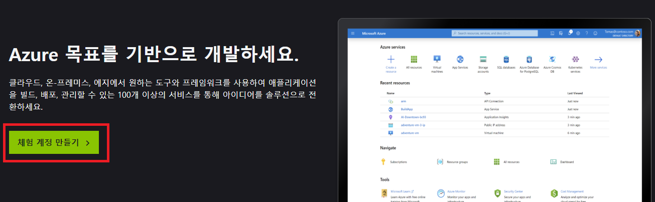 1. Microsoft Azure 홈페이지 접속