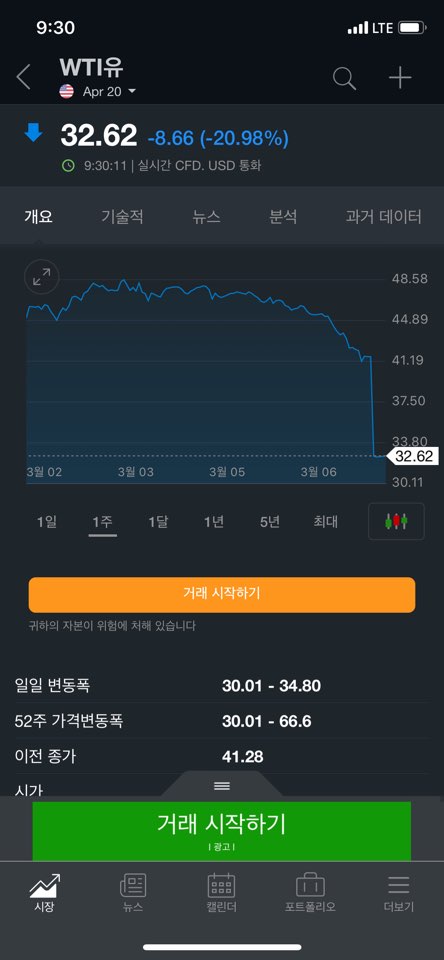 1. OPEC+ ( OPEC - 중동 산유국 과 러시아의 연합)에서 OPEC이 러시아에게 감산 요청 -> 러시아 거절 -> OPEC이 그러자 갑자기 석유 증산을 계획 ( 러시아 및 다른 지역 산유국과 가격 경쟁 시작)