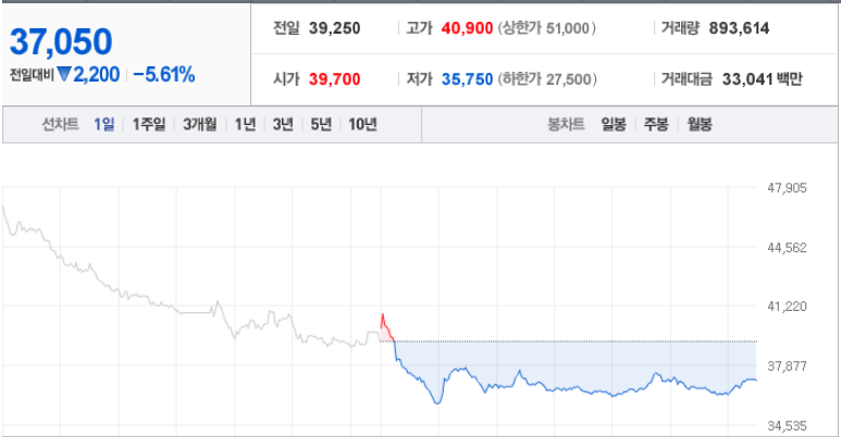코스피가 7%나 오르는 오늘 같은 날 H지주사(한국금융지주)와 S증권사(삼성증권)은 주가가 떨어졌습니다.