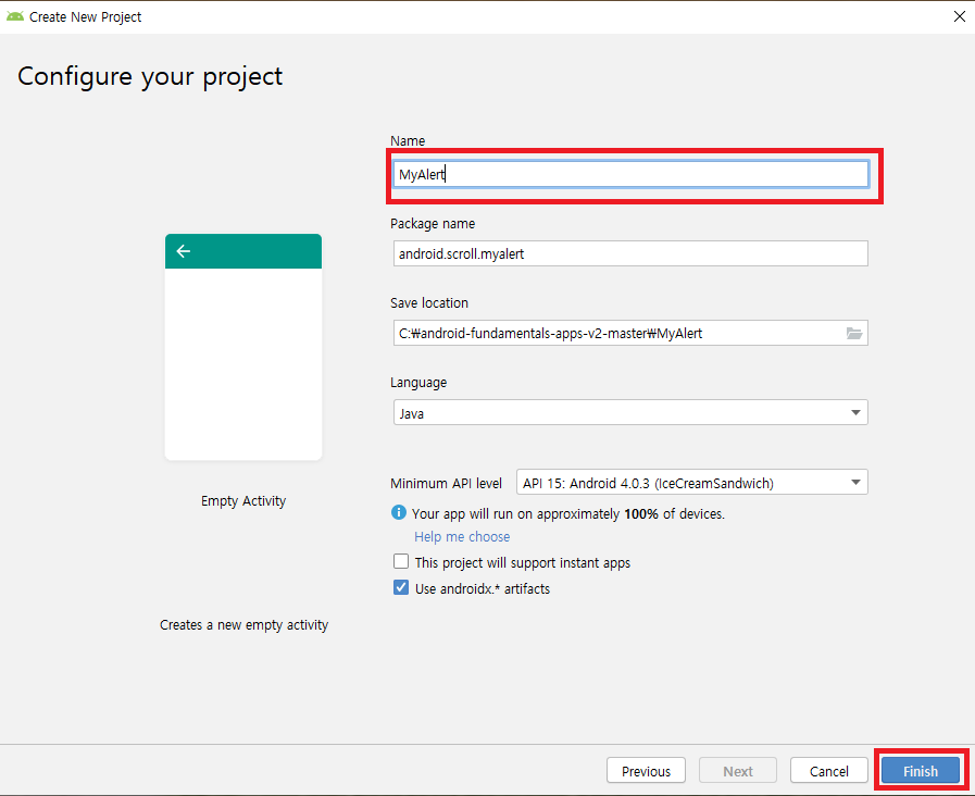 1. Empty Activity로 새로운 project 생성